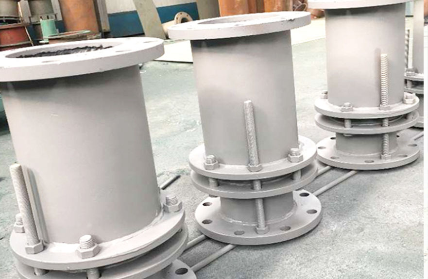 1、安裝前松開壓盤螺栓,將伸縮器拉長至安裝長度,然后對角法擰緊螺栓,切勿壓偏。